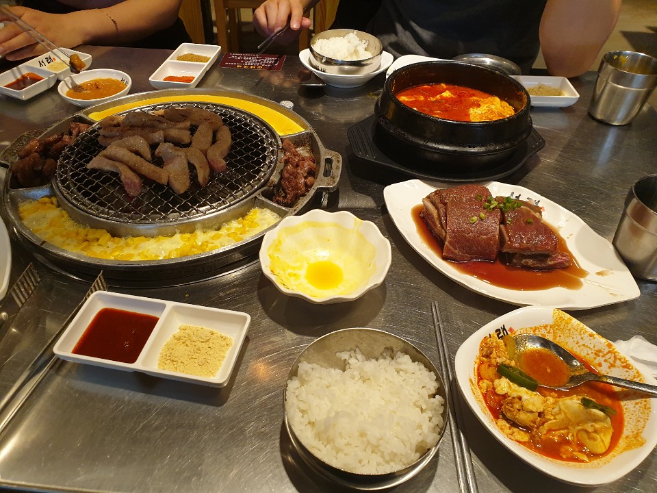 고기 불판옆에 계란찜이랑 옥수수치를 같이 구워주는데 맛있구요, 김치라면도 먹을만해요.