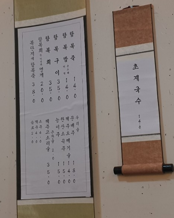 저희는 탐복죽, 탐복밥(미역,곤드레), 초계국수 이렇게 주문해서 먹었어요.