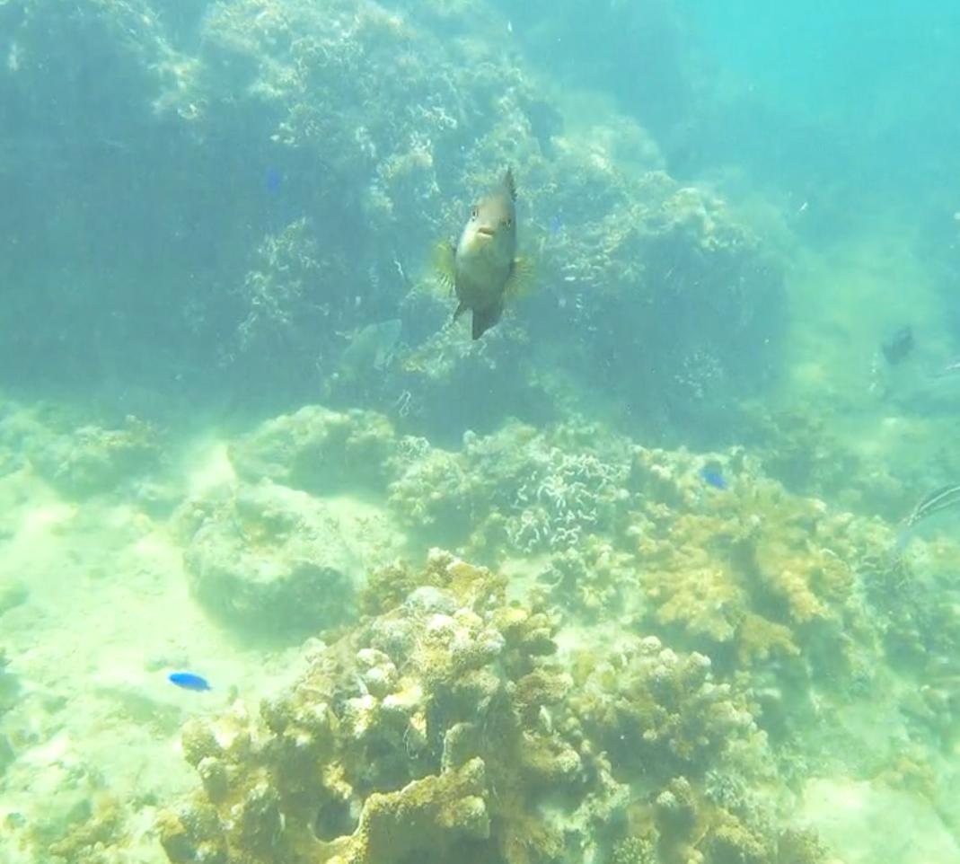 물이 얕은데도 있는데, 살짝 깊은 곳에 가야 물고기가 있어요. 바다 안의 돌들이 정말 날카로워서 물안에 들어갈때는 아쿠아슈즈나 슬리퍼라도 꼭 신고 들어가시기를 추천해요. 저도 손으로 돌을 디디다가 살짝 베일뻔했어요..