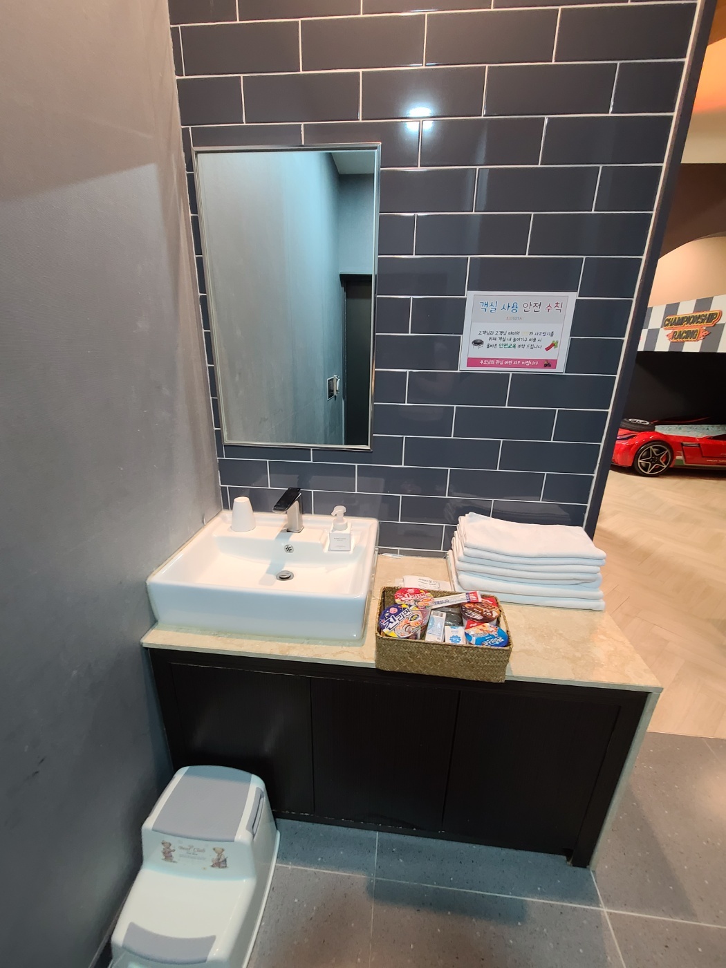 여긴 레이싱룸이라..아기 침대.. 잠은 저희랑 큰침대에서 같이 잤다는;;